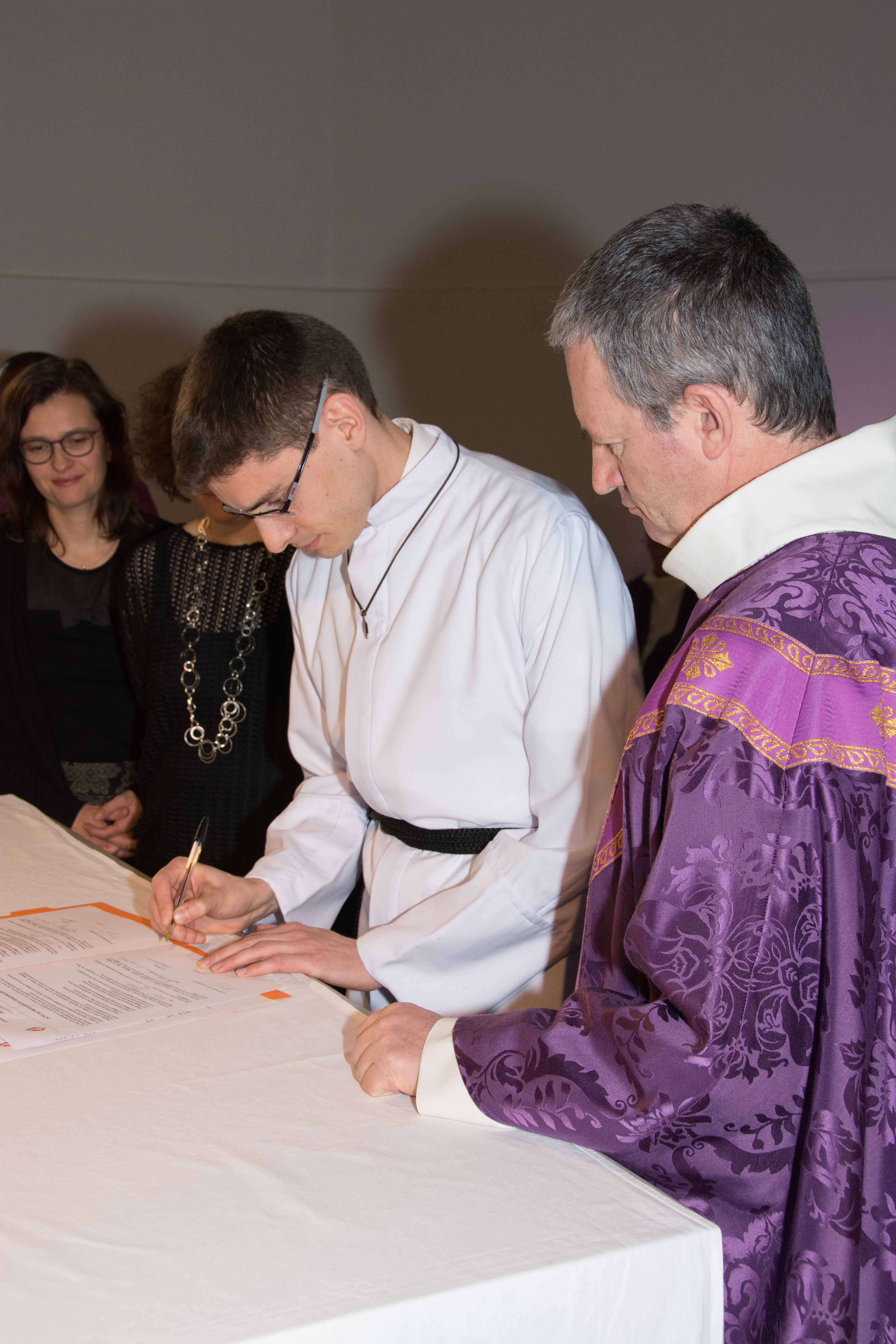 Après un début de carrière professionnelle, Vincent a ressenti l’appel à être prêtre. Après quelques temps de formation dans le diocèse de Strasbourg, désirant vivre la vie communautaire et missionnaire, il a rencontré le frère Szczepan Frankowski, spiritain, et a demandé à entrer en formation chez les spiritains en 2013. Il a fait une année de formation en communauté à Lille, tout en étudiant, en s’investissant auprès des personnes dépendantes et en découvrant davantage les spiritains. Il a ensuite demandé à préparer son engagement religieux en faisant une année de noviciat, à Chevilly Larue, où avec d’autres, il a mûri sa décision. C’est à l’issue du noviciat qu’il a demandé à prononcer ses vœux religieux. Sa demande a été examinée par les responsables spiritains qui ont donné leur accord, en s’engageant à soutenir Vincent dans son engagement.